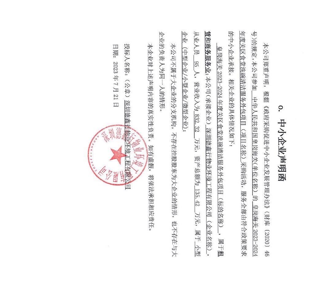 二、項目名稱:皇崗海關2023-2024年度關區(qū)食堂洗碗清潔服務外包項目